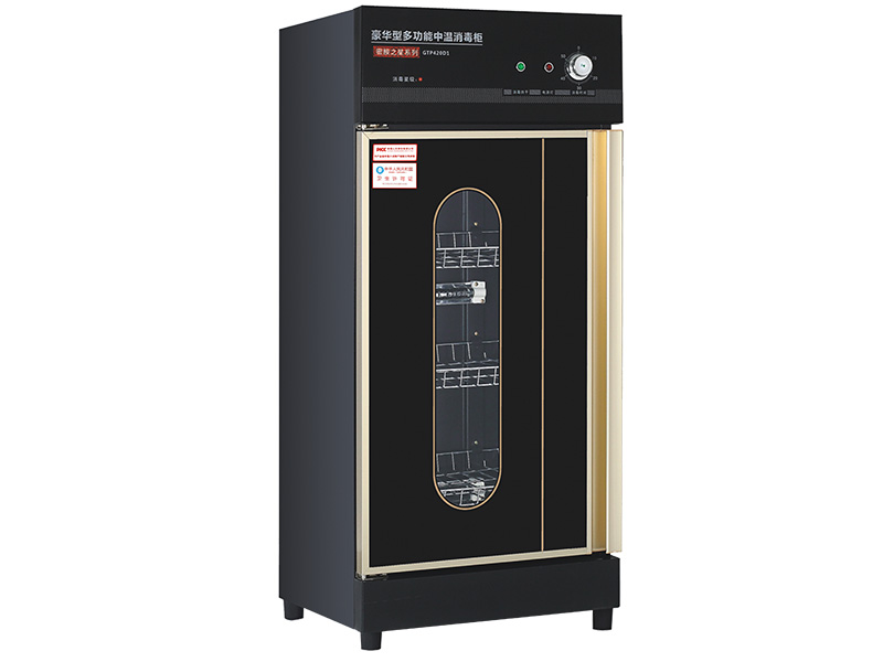消毒柜是指通過(guò)紫外線(xiàn)、遠(yuǎn)紅外線(xiàn)、高溫、臭氧等方式,給食具、餐具、毛巾、衣物、美容美發(fā)用具、醫(yī)療器械等物品進(jìn)行烘干、殺菌消毒、保溫除濕的工具,外形一般為柜箱狀,柜身大部分材質(zhì)為不銹鋼。